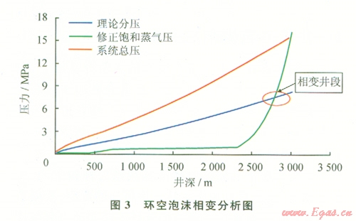 1)在鉆進過程中,如果泡沫流體相態(tài)發(fā)生變化,其密度等參數(shù)將發(fā)生變化,直接影響井底壓力的推算,并且導致井筒流體流態(tài)及工況參數(shù)改變,可能導致井下復雜情況的出現(xiàn)。
