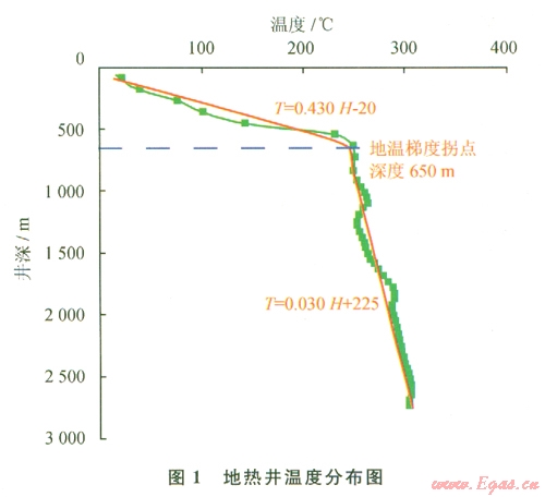 如圖l所示,根據(jù)該地區(qū)某井實測地溫數(shù)據(jù)擬合結果,將地熱井地層地溫梯度簡化為0~