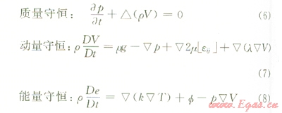 式中g為重力加速度;μ=μ(p、T)為黏性系數(shù);λ=λ(p、T)為體膨脹黏性系數(shù);k=k(p、T)為熱傳導系數(shù)。