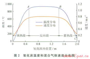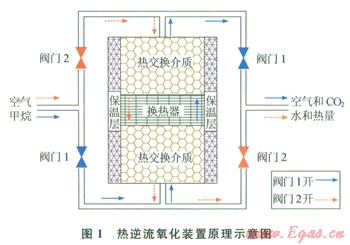 熱逆流氧化裝置原理如圖l所示,裝置啟動(dòng)時(shí),由電加熱元件將氧化床預(yù)熱,使中央溫度達(dá)到點(diǎn)火溫度(
