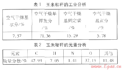 玉米秸稈是我國北方農(nóng)村地區(qū)應用的主要生物質(zhì)材料,低熱值為l5.84 MJ/kg[8],其工業(yè)分析見表1,元素分析見表2。