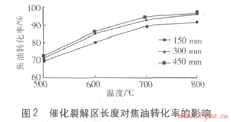 ②在一定范圍內(nèi),隨著催化裂解區(qū)長度、催化裂解溫度的增加,焦油轉(zhuǎn)化率提高。然而從經(jīng)濟性和可操作性角度看,