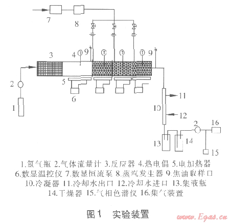 實驗裝置見圖l,包括材料存放區(qū)、生物質(zhì)熱解區(qū)、催化裂解區(qū)、蒸汽發(fā)生器、熱解氣冷卻裝置、檢測系統(tǒng)等。整個反應器為長