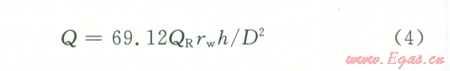 產(chǎn)能模擬法是利用蘇東35-57井儲層巖心,在地層壓力溫度條件下,沿水平方向建立不同的生產(chǎn)壓差,獲得單向滲流條件下的氣相滲流速度,再轉(zhuǎn)換成徑向滲流條件下的單井產(chǎn)能[8-10]。設(shè)實(shí)驗室?guī)r心氣體流速為QR,巖心滲流面積為A,單井日產(chǎn)氣量為Q,有效厚度內(nèi)氣體滲流面積為2πrh,D為試驗巖心的直徑。則可得:
