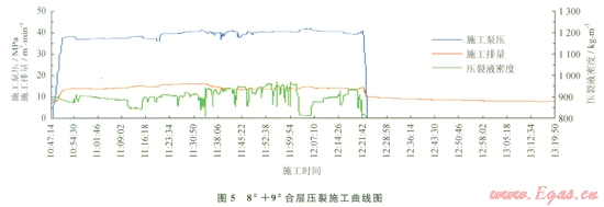 根據(jù)式(3)得出此時(shí)總孔眼摩阻為△Ppf2,結(jié)合式(2)、(3)、(7)求出此時(shí)施工壓力PE2為: