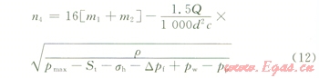 為了確定投球數(shù),假定堵上n0個(gè)孔以后,全煤層均被壓開(kāi),此時(shí)有效孔眼數(shù)n2為: