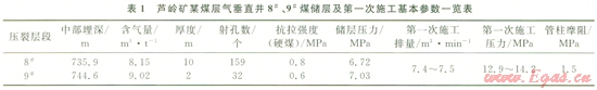 筆者以淮北礦區(qū)蘆嶺礦某煤層氣垂直井8#+9#煤層合層投球水力壓裂來(lái)檢驗(yàn)理論的適用性。