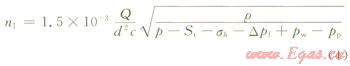 根據(jù)式(3)得出此時(shí)總孔眼摩阻為△Ppfl,結(jié)合式(2)、(3)、(5)求出此時(shí)在硬煤中形成新裂縫的臨界施工壓力PE1為: