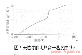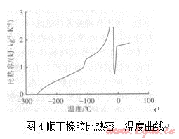 丁苯橡膠是丁二烯和苯乙烯的無規(guī)共聚物,其玻璃化溫度和比熱容隨丁二烯和苯乙烯配比的不同發(fā)生變化。以苯乙烯質(zhì)量分?jǐn)?shù)為25.5%的丁苯橡膠為例,其玻璃化溫度為一57℃,比熱容與溫度的關(guān)系為: