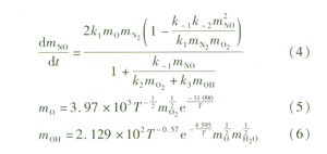 在燃燒過(guò)程中有3種氮氧化物生成:瞬時(shí)N0x、燃料N0x和熱力N0x。對(duì)于天然氣這種清潔燃料的燃燒,熱力N0x生成是主要的。熱力N0x生成有3個(gè)主要反應(yīng):