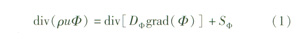 與火焰燃燒一樣,天然氣的無(wú)焰氧化包含湍流流動(dòng),本文采用標(biāo)準(zhǔn)的可壓縮k-ε模型。穩(wěn)態(tài)形式的動(dòng)量、能量和物種輸運(yùn)方程可寫成以下通用形式: