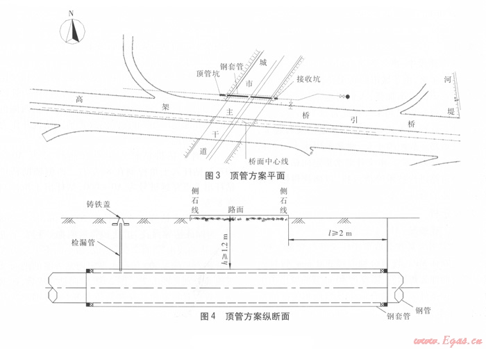 由表l可知,水平定向鉆方案造價較高,但工期較短;頂管方案造價較低,但由于頂管坑需要養(yǎng)護期,其工期較長。因此,在實際工程中,應綜合考慮工程的客觀情況選擇最佳方案,即對于工期緊張的工程,應優(yōu)先選擇水平定向鉆方案,而對于降低造價要求較高的情況,則優(yōu)先選擇頂管方案。