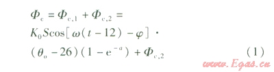 對(duì)于某一確定建筑物,空調(diào)系統(tǒng)冷負(fù)荷中。的計(jì)算式為[5]: