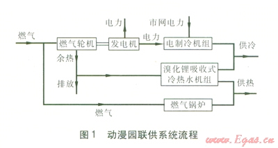 燃?xì)饫錈犭娐?lián)供系統(tǒng)(以下簡(jiǎn)稱聯(lián)供系統(tǒng))是以天然氣為一次能源,產(chǎn)生電和可用冷熱能的能源系統(tǒng)[1]。利用燃?xì)廨啓C(jī)、內(nèi)燃機(jī)等發(fā)電機(jī)組與溴化鋰吸收式冷熱水機(jī)組進(jìn)行優(yōu)化組合,可實(shí)現(xiàn)終端能源的梯級(jí)利用和高效轉(zhuǎn)換,避免遠(yuǎn)距離輸電損失,提高能源利用效率,降低能耗。[2-12]。