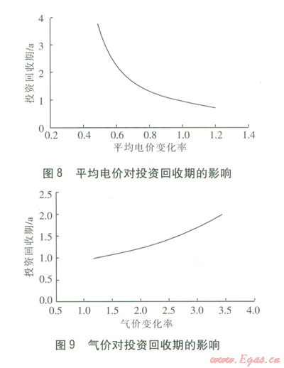 ②電價(jià)對(duì)燃?xì)饫錈犭娐?lián)供系統(tǒng)經(jīng)濟(jì)性的影響比較顯著,而氣價(jià)的影響不很明顯。