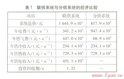 由表l可知,雖然聯(lián)供系統(tǒng)的造價(jià)高于分供系統(tǒng),但由于聯(lián)供系統(tǒng)年供電收入較高,使得在較短的時(shí)間內(nèi),就將多出的造價(jià)收回。