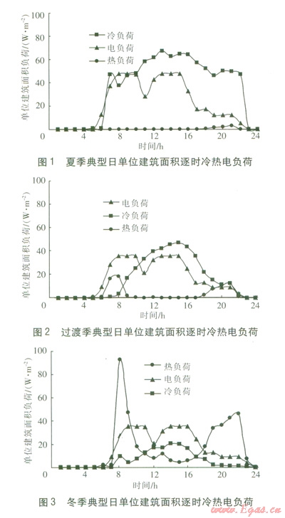 由圖l~3可知,夏季、過(guò)渡季、冬季的電負(fù)荷具有相同的特性。隨著上班時(shí)間的來(lái)臨,開(kāi)始增長(zhǎng),在中午休息時(shí),由于部分人員外出,出現(xiàn)一個(gè)小低谷,然后恢復(fù)到正常水平。隨著下班時(shí)間的來(lái)臨,開(kāi)始下降,直到加班人員離開(kāi)辦公樓。夏季電負(fù)荷的整體水平高于過(guò)渡季、冬季。