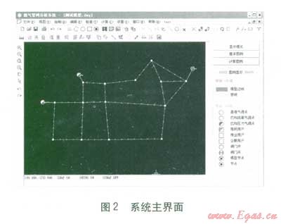 a.實現(xiàn)了將GIS管網圖紙及管段固有屬性信息向簡單程序的轉化,并且模擬的數(shù)據可以直觀地表示在網紙上;能夠手工對圖紙進行修改,在系統(tǒng)界面中進行管網相關數(shù)據的錄入,例如管段及其附屬設施、氣源等信息,進行模型修正。