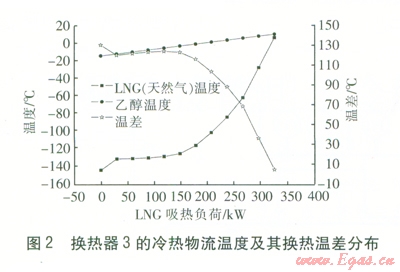 由圖2可知,當(dāng)-145℃的LNG與乙醇進(jìn)行熱交換時,LNG氣化升溫至