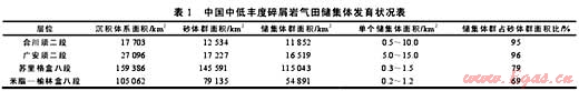 儲(chǔ)集體的大型化發(fā)育是指由平緩地勢(shì)與繼承性水系控制的沉積砂體,經(jīng)過(guò)成巖作用改造后形成的“儲(chǔ)集體群”,或碳酸鹽巖經(jīng)過(guò)后生溶蝕改造作用而形成的“縫洞單元”群,多以集群方式出現(xiàn),規(guī)模相當(dāng)大。本文所說(shuō)的儲(chǔ)集體大型化發(fā)育,是指儲(chǔ)集體群的規(guī)模在數(shù)千至數(shù)萬(wàn)平方千米以上(見表1、表2),如鄂爾多斯盆地蘇里格氣田已探明與基本探明的含氣面積超過(guò)3.3×104km2,相對(duì)獨(dú)立的氣藏?cái)?shù)量多達(dá)數(shù)萬(wàn)個(gè)。碳酸鹽巖縫洞型“儲(chǔ)集體群”在塔里木、四川和鄂爾多斯盆地都有發(fā)育,是碳酸鹽巖廣泛發(fā)育的一種儲(chǔ)集體類型。如果以縫洞單元作為油氣成藏的基本單元,也是由數(shù)千至數(shù)萬(wàn)個(gè)油氣成藏單元組成的大型油氣藏群,分布面積在數(shù)千至數(shù)萬(wàn)平方千米以上。