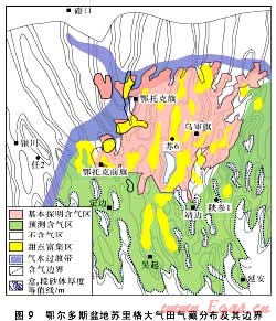 所謂大型化成藏分布的近源性,是指中低豐度油氣藏主要分布于有效烴源灶范圍內(nèi)或與烴源灶緊密關(guān)聯(lián)的范圍內(nèi),成藏分布具明顯的源控性。有兩方面含義:①與烴源灶共生,中低豐度油氣藏群大型化成藏的基本條件是烴源灶和儲(chǔ)集體不僅規(guī)模大,而且兩者必須緊密接觸。②烴源灶與儲(chǔ)集體間存在較大的壓力差或烴類濃度差,以保證油氣有效成藏和大規(guī)模成藏。近期通過(guò)對(duì)鄂爾多斯、四川、松遼、吐哈和準(zhǔn)噶爾等盆地已發(fā)現(xiàn)中低豐度油氣藏解剖研究,發(fā)現(xiàn)這類油氣藏分布于烴源灶范圍內(nèi)的比例高達(dá)90%以上。由于成藏分布的近源性,中低豐度氣藏群分布具有明顯的地域性,主要分布于坳陷湖盆的向斜區(qū)和廣大斜坡區(qū)、克拉通盆地古隆起的圍斜部位與前陸盆地緩翼斜坡區(qū)。