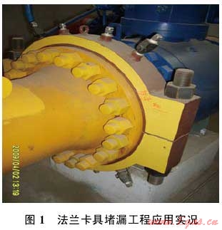 專用高壓卡具堵漏技術(shù)方案的主要特點是能夠在保留原有管道法蘭結(jié)構(gòu)的情況下,實施快速堵漏或搶修。但是,堵漏效果往往受兩法蘭外表面同心同軸度等影響,在對法蘭連接面實施密封后,高壓氣體可能從法蘭兩側(cè)的螺栓連接處再次泄漏。另外,在向夾具內(nèi)注入密封膠時,還需要根據(jù)管道內(nèi)壓,調(diào)整注入密封劑的操作壓力等,一旦管道內(nèi)壓變化較大,勢必影響密封效果。