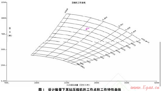 壓縮機(jī)組供貨商在投標(biāo)文件中提供的性能曲線一般只包含有限個(gè)水力工況點(diǎn)的參數(shù)。對(duì)于多壓縮機(jī)站長(zhǎng)輸管道,由于下游用氣市場(chǎng)的數(shù)據(jù)不斷更新,用戶在壓縮機(jī)組招標(biāo)期間提供給壓縮機(jī)供貨商的水力參數(shù)很可能與實(shí)際輸量有很大差別,某些工作點(diǎn)甚至有可能進(jìn)入喘振線、最大和最小轉(zhuǎn)速曲線。如果不對(duì)壓縮機(jī)組進(jìn)行適用性分析,管道設(shè)計(jì)者就無(wú)法確認(rèn)不同壓縮機(jī)組供貨商提供的壓縮機(jī)組能否完全覆蓋管道全部的工況點(diǎn),無(wú)法判定實(shí)際工作點(diǎn)在壓縮機(jī)性能曲線中的位置,無(wú)法確定實(shí)際的壓縮機(jī)組效率、功率和燃?xì)夂牧康戎匾獏?shù),無(wú)法確定何時(shí)需要更換壓縮機(jī)轉(zhuǎn)子,更無(wú)從優(yōu)化壓縮機(jī)站的運(yùn)行參數(shù)以獲得最小的能量消耗和最優(yōu)的運(yùn)行方案。