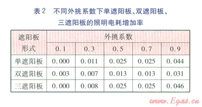 ③單遮陽板、多遮陽板基本不影響照明電耗。