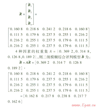 由一級模糊綜合評價可知二級模糊矩陣為: