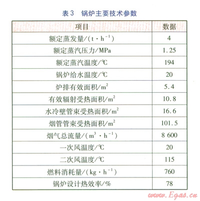 目前市場上比較常見的生物質(zhì)成型燃料是直徑為20~40 mm、長度為40~80 mm的柱狀顆粒,低位發(fā)熱量為l4.2~22.4 MJ/kg。影響生物質(zhì)成型燃料完全燃燒的主要因素為:①送風(fēng)量不足易導(dǎo)致生物質(zhì)成型燃料燃燒不充分,灰渣中含碳量較高,還使得一部分CO在爐膛中沒有燃燒就隨煙氣排出。因此應(yīng)增大一次風(fēng)量,配置功率較大的送風(fēng)機,并適當增加二次風(fēng)量。②生物質(zhì)成型燃料在爐膛中停留時間太短,導(dǎo)致燃料沒有足夠的時間燃燒,產(chǎn)生不完全燃燒。應(yīng)適當增大爐膛容積,并采用爐拱配合二次送風(fēng),加強攪動混合。
