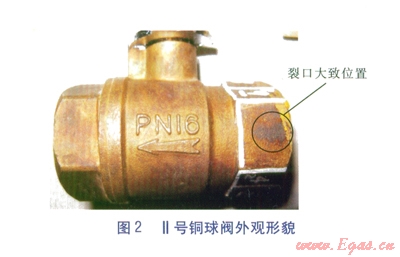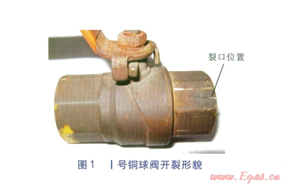近年來,在西安秦華天然氣有限公司天然氣輸配系統中螺紋銅球閥與燃氣管道螺紋連接處開裂事件屢有發(fā)生,據統計2011年中壓閥門井內的放散銅球閥(DN 25 mm)及調壓箱進口管道處設置的放散銅球閥(DN