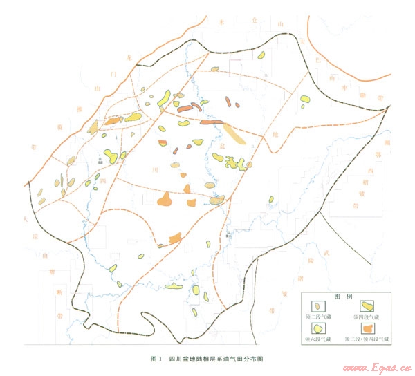 近60年在四川盆地對(duì)陸相層系的油氣勘探取得了大量成果,發(fā)現(xiàn)油氣田60余個(gè)(圖1),探明天然氣儲(chǔ)量約7 000×108m3,顯示出四川盆地陸相層系具有“多套砂巖油氣層與頁巖氣層交叉疊置、滿盆分布”的特點(diǎn),砂巖油氣和頁巖氣兼顧立體勘探格局將向全盆地展開,前景十分廣闊。
