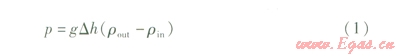 熱壓自然通風(fēng)是指由于不同溫度空氣間的密度差異產(chǎn)生自發(fā)空氣流動(dòng)的通風(fēng)換氣方式[6]。當(dāng)室內(nèi)空氣溫度高于室外空氣溫度,且不同高度存在開口時(shí),空氣通過(guò)下部開口進(jìn)入,由上部開口流出。開口之間空氣流動(dòng)動(dòng)力(即熱壓)p的計(jì)算式為: