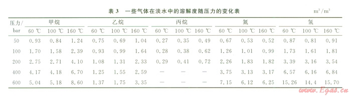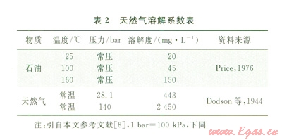 微石油[可溶有機質(zhì)(瀝青)、液態(tài)碳?xì)浠衔锏?span lang="EN-US">]、水在有機質(zhì)成烴演化進(jìn)程中,既是有機質(zhì)的成烴產(chǎn)物,又是天然氣的溶解載體;水既參與演變,又充當(dāng)微石油、溶解天然氣的載體。其溶解量則與溫度、壓力等外在因素相關(guān)(表2、3)。