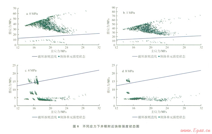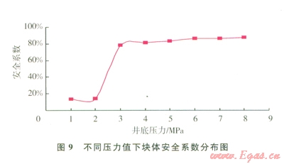 2)通過定量分析各種狀態(tài)井眼附近塊體失效情況,從安全系數上看,塊體在2~8 MPa幾種狀態(tài)下都超過78%。