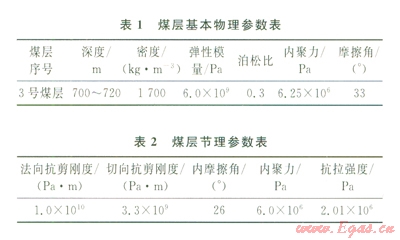 筆者選擇的研究對象為3號煤層,煤層的各種力學參數設置參照眾多研究成果,見表l、2。