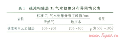 2)不同飽和度下電阻率與孔隙度交會(huì)、核磁共振測(cè)井氣水弛豫分布信息足礁灘相儲(chǔ)層氣水差異判別的最有效的方法。尤其能解決裂縫引起的深淺側(cè)向負(fù)差異的流體性質(zhì)識(shí)別難題。
