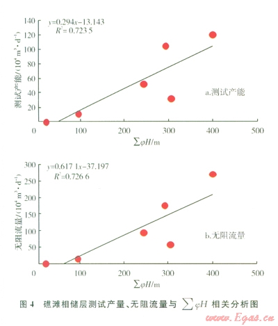 3)礁灘相氣層孔隙度和有效厚度的乘積累加能直接反映出儲(chǔ)層的產(chǎn)能狀況,這將為礁灘相儲(chǔ)層快速便捷地進(jìn)行產(chǎn)能預(yù)測(cè)提供技術(shù)依據(jù)。