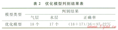 表2顯示優(yōu)化模型較歐氏模型及馬氏模型對(duì)儲(chǔ)層流體性質(zhì)的識(shí)別能力有極大的提高。