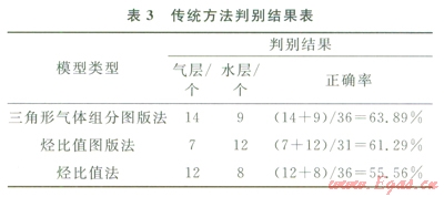圖1表明筆者提出的儲(chǔ)層流體識(shí)別方法均好于3種傳統(tǒng)的方法。傳統(tǒng)方法中以三角形氣體組分圖版法為最好,烴比值圖版法次之,烴比值法再次,與實(shí)際應(yīng)用情況相符合。但3種方法的判別止確率均小于75%,從數(shù)理統(tǒng)計(jì)角度看判別能力不強(qiáng),這也是此類方法在識(shí)別復(fù)雜儲(chǔ)層流體性質(zhì)時(shí)效果不好的原因之一。