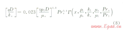 缺液區(qū)以液滴在氣體的彌狀流動為主。關(guān)于彌狀流的傳熱公式選擇下式[11]: