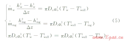 式中下標(biāo)mg代表該段的NG氣體,wall代表管壁,o代表管外側(cè),i表示管內(nèi)側(cè),其余同上。