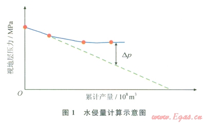 水侵量可根據(jù)視地層壓力與累計產(chǎn)氣量的關(guān)系曲線進(jìn)行計算(圖1)。