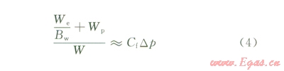 圖1的分析是按孔隙型儲層計算巖石有效壓縮系數(shù)得到的。裂縫系統(tǒng)的壓縮系數(shù)遠高于孔隙系統(tǒng),根據(jù)式(4)可知其極限水侵量占可動水體儲量的比例會更大。另一方面,目前流行的巖石有效壓縮系數(shù)計算方法未充分考慮壓力降低后巖石空隙巾高壓流體支撐作用減退的影響。有研究表明,充填不同流體的多孔巖石彈性模量不同,在相同有效應(yīng)力作用下,充填水的空隙在流體壓力釋放后變形強于氣層[3]。綜合以上分析可知,儲層裂縫發(fā)育的水區(qū)極限水侵量很可能比針對孑L隙型儲層的預(yù)測值成倍增大,這是一些與小水體接觸的氣藏開發(fā)過程巾呈現(xiàn)強水侵的原因。