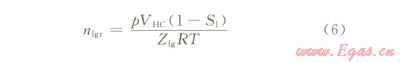 經(jīng)歷開(kāi)采過(guò)程中水體與束縛水的膨脹以及地層水的產(chǎn)出之后,剩余水溶氣摩爾量為: