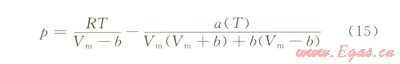 天然氣在地層水中的溶解度受到溫度、壓力、地層水礦化度以及天然氣組成等因素的影響[7-9]。由于天然氣在水中的溶解屬氣液平衡問(wèn)題,溶解度除通過(guò)實(shí)驗(yàn)測(cè)定外,也可根據(jù)相平衡原理進(jìn)行計(jì)算。對(duì)于地層條件下的高壓相平衡問(wèn)題,可采用狀態(tài)方程法。廣泛使用的PR狀態(tài)方程[10]形式為: