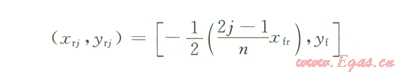 同理,其右翼裂縫上的第J個(gè)點(diǎn)匯的坐標(biāo)可以表示為: