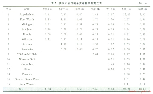 初步研究結論指出(圖8),中國南方地區(qū)、華北地區(qū)、新疆塔里木盆地、西藏羌塘盆地發(fā)育海相頁巖,南方地區(qū)、華北地區(qū)、新疆地區(qū)發(fā)育海陸過渡相—湖沼相煤系頁巖,松遼盆地、渤海灣盆地、鄂爾多斯盆地、四川盆地等發(fā)育湖相頁巖,上述3類頁巖都具備頁巖氣形成與富集的條件。國內外專家預測:中國頁巖氣資源非常豐富,或許超過常規(guī)天然氣資源量(圖5、表l)。實際上,中國到底會有多少頁巖氣資源,從目前國內流行的多版本資源數(shù)據(jù)就可見一斑,每個預測數(shù)據(jù)看似依據(jù)都很充分,但實際又都不可信,關鍵緣由是目前中國頁巖氣資源預測的基礎非常差。美國是在經(jīng)歷了數(shù)l0年頁巖氣勘探開發(fā)實踐的基礎上,才逐步解決了頁巖氣資源問題,其頁巖氣資源量估算基礎是建立在工業(yè)化規(guī)模開發(fā)的9大頁巖氣區(qū)帶、近60 000口頁巖氣生產井、近30年頁巖氣規(guī)模生產經(jīng)驗上,采用了單井(生產)最終可采儲量法。即便是如此,美國的頁巖氣資源量在不同經(jīng)濟、技術條件下,仍然還會隨時有較大的變化(表2) [14]。