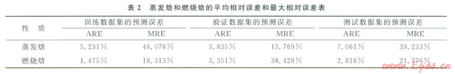 表2中展示了新構(gòu)建燃燒焓和蒸發(fā)焓模型的結(jié)果。從表2中可以看出,經(jīng)過(guò)上述處理后,所構(gòu)建的ANN模型在“驗(yàn)證”集和“測(cè)試”集中的預(yù)測(cè)表現(xiàn)有所改善。