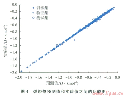 對(duì)燃燒焓而言,盡管“訓(xùn)練”集與另兩個(gè)集之間的一致性不會(huì)直接改善預(yù)測(cè)表現(xiàn),但卻表明了模型的預(yù)測(cè)質(zhì)量有所改善。